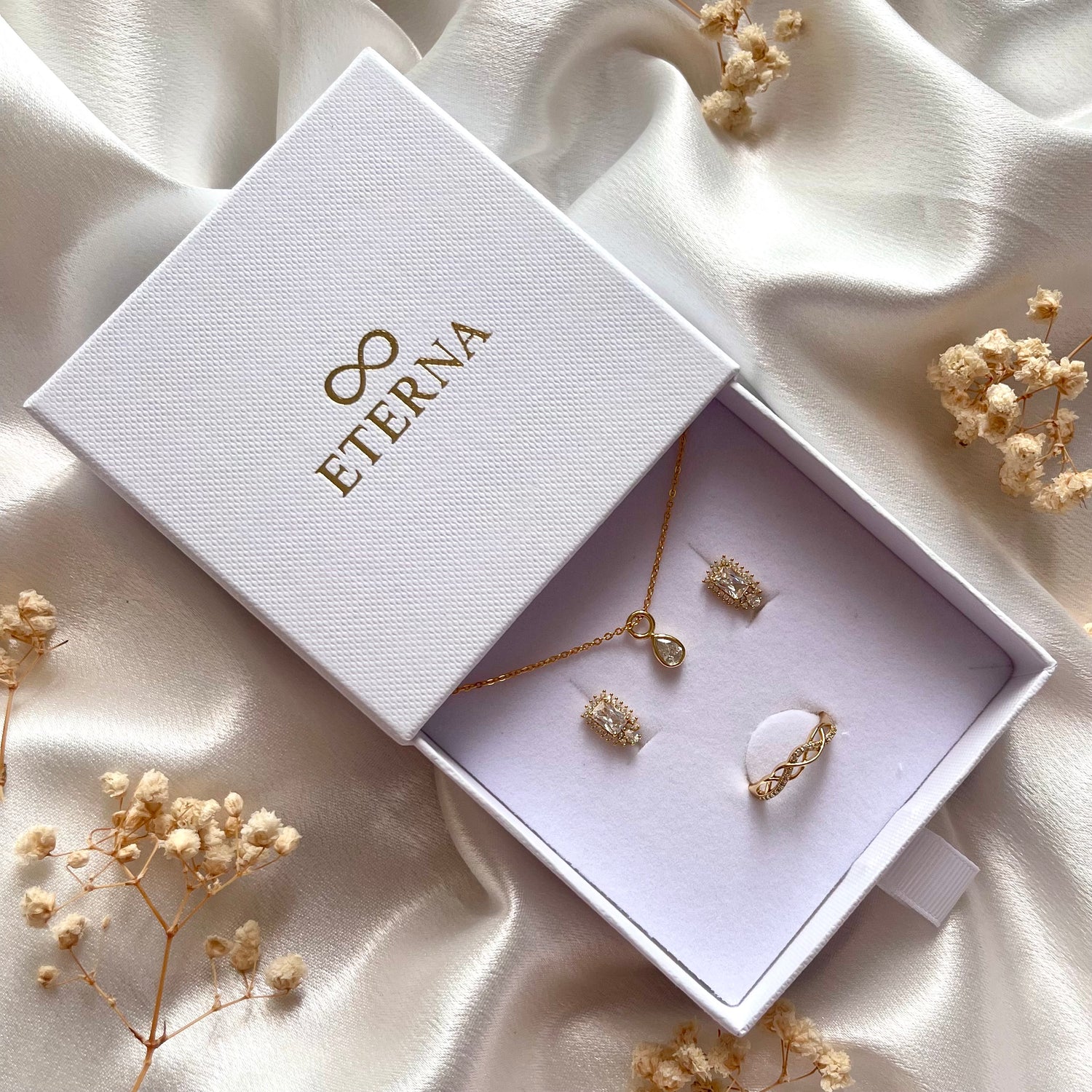 Chaque bijou Eterna est soigneusement présenté dans un écrin élégant et délicat, prêt à être offert ou à chérir. Nous accordons une attention particulière aux détails pour que votre expérience soit aussi précieuse que nos créations.