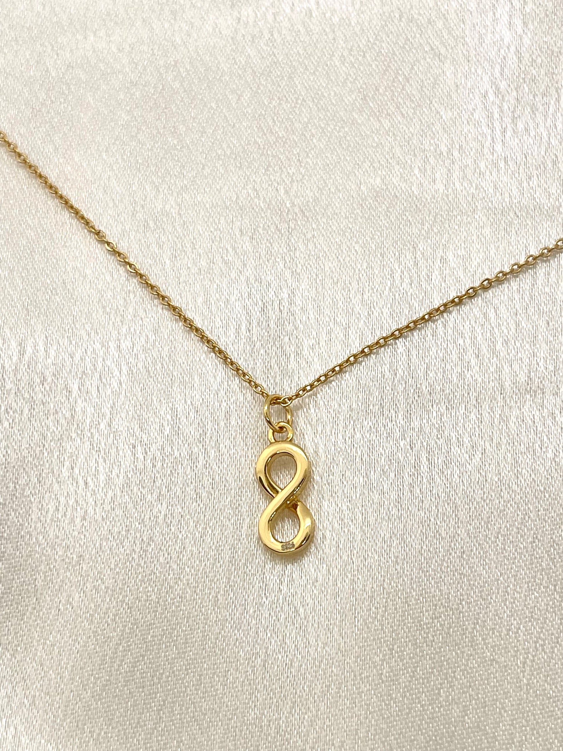 Son pendentif en forme de signe infini représente l’amour, la continuité et les liens qui ne s’effacent jamais — un bijou à la fois élégant et porteur de sens.